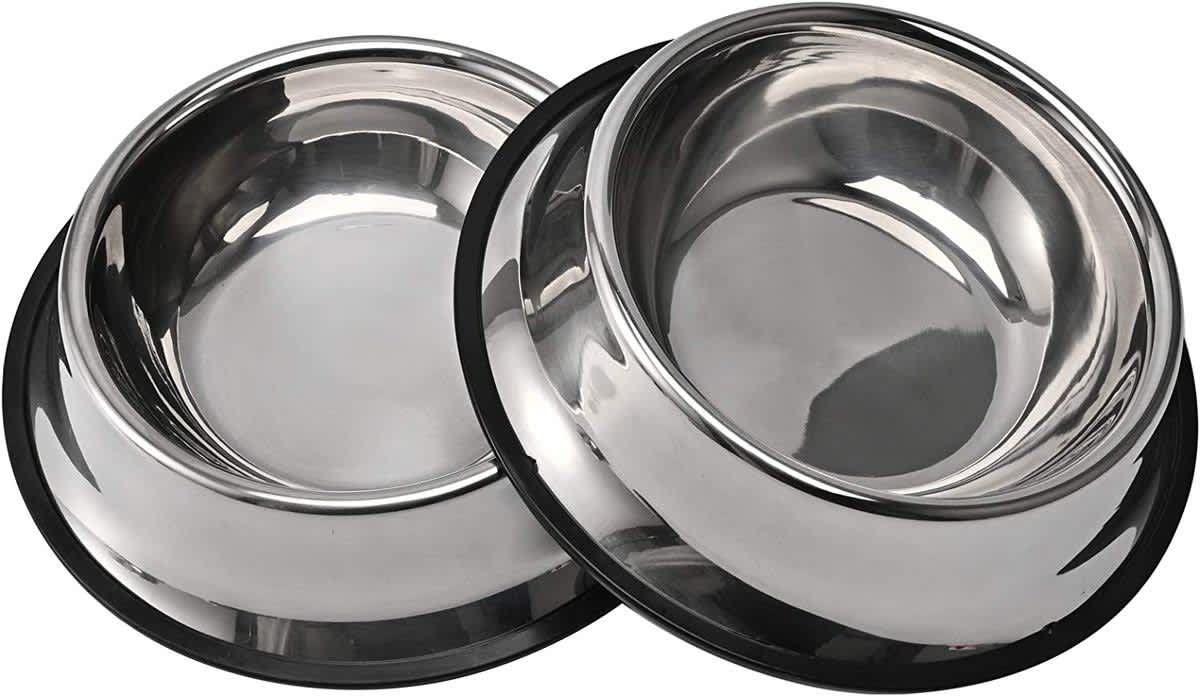 2 x Stainless Steel Dog Bowl, with Anti-Skid Rubber Base