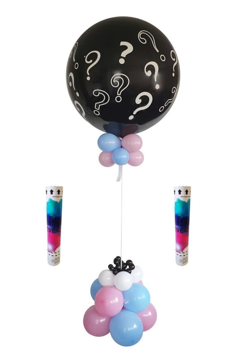 Giant Gender Reveal Balloon With 10 Pink & Blue Decorative Balloons, Powder And Cannons