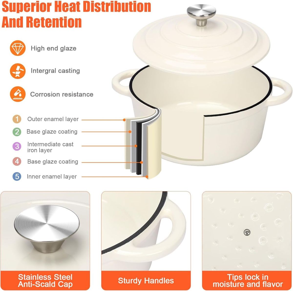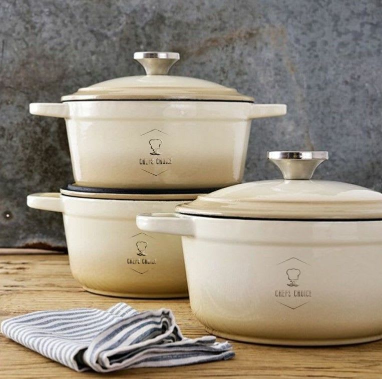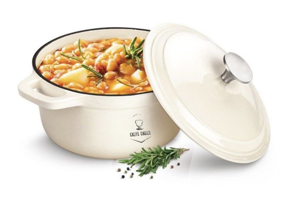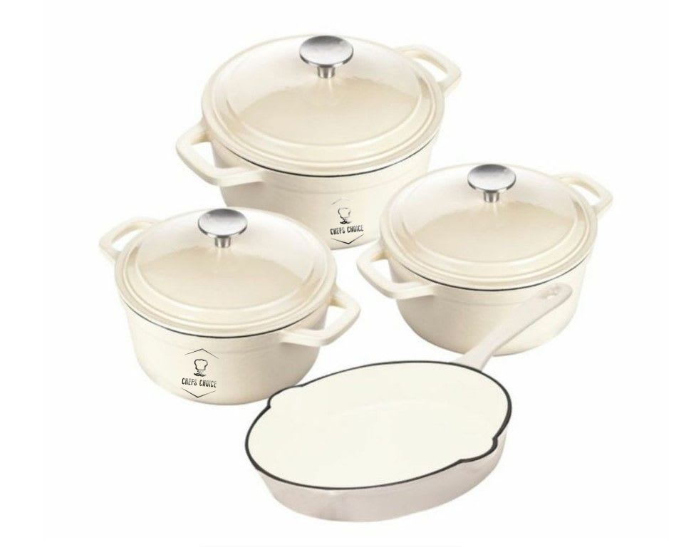 Chef s Choice Premium Cast Iron Cookware – 7pcs Pot Set – White –