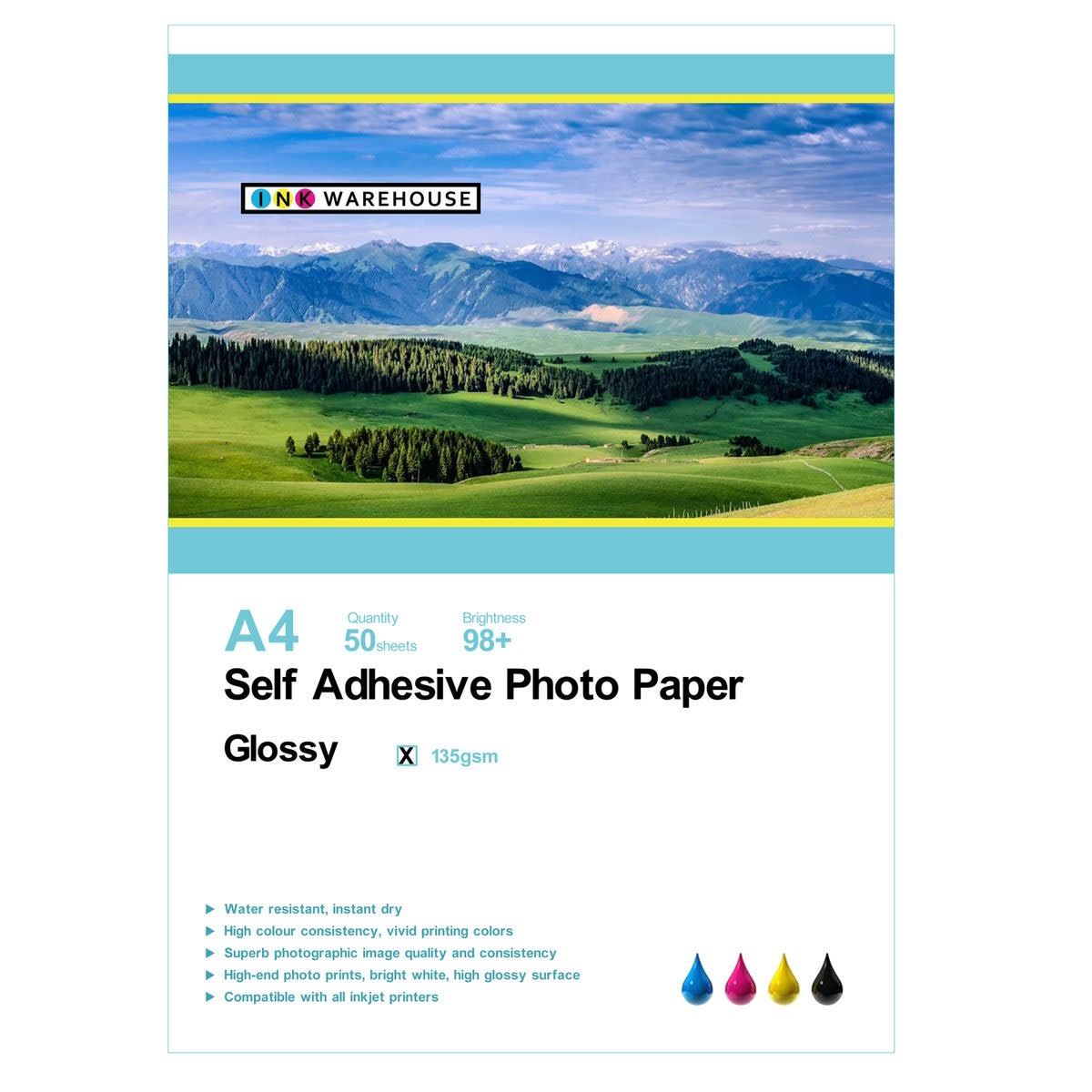 1 x INKWAREHOUSE 135 GSM Self Adhesive Gloss Photo Paper A4 – 50 Sheets