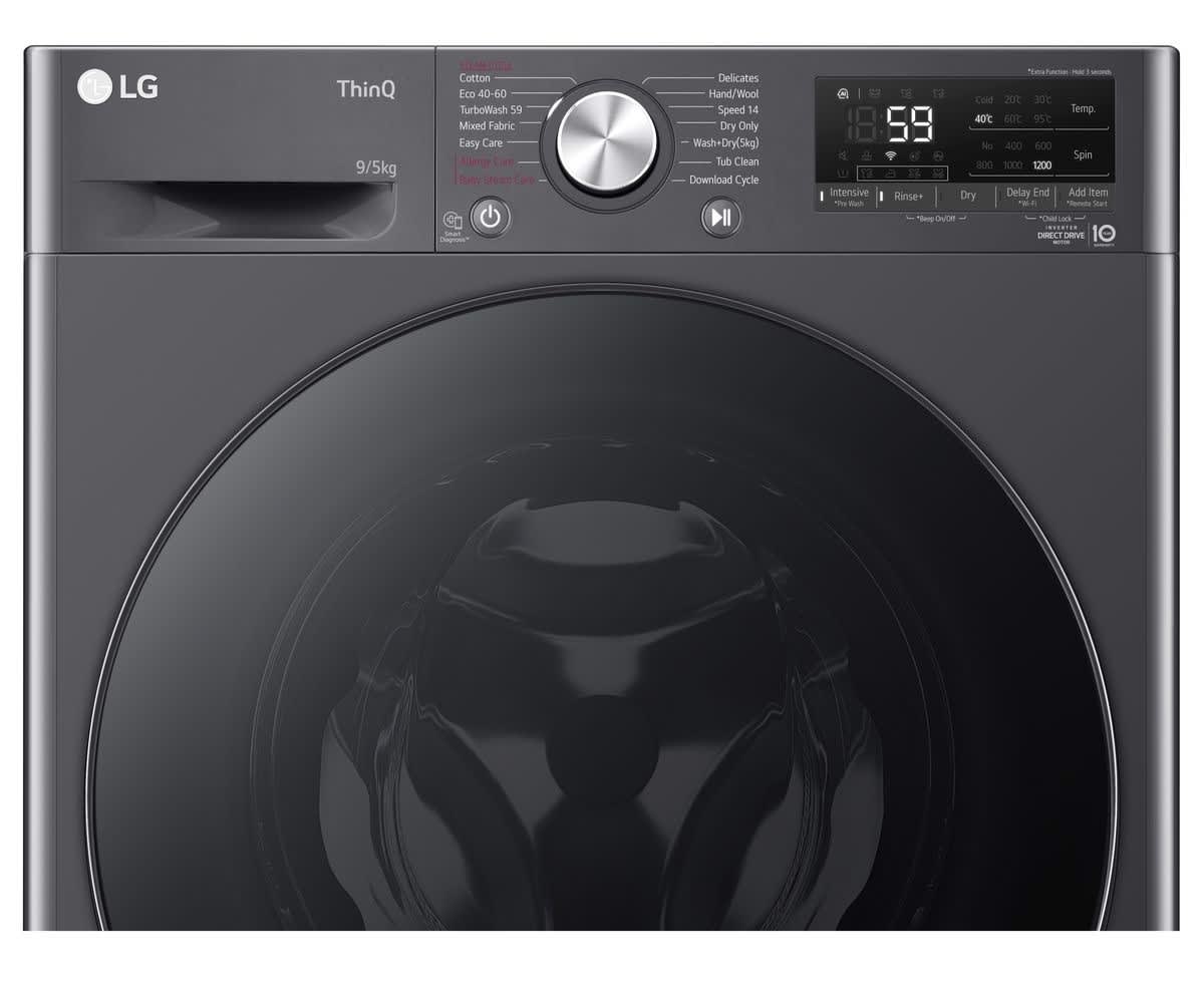 LG 9/5kg Mid-Black Front Load Washer Dryer Combo with AIDD & Steam F2V5FRPY