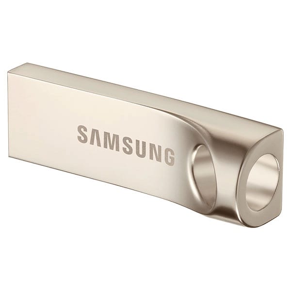 A unique, sophisticated design, the sleek Samsung USB drive is an appealing combination of form and performance. This streamlined metallic-based design appeals to your aesthetic side, while the larger key ring hole is practical and can prevent it from being lost.